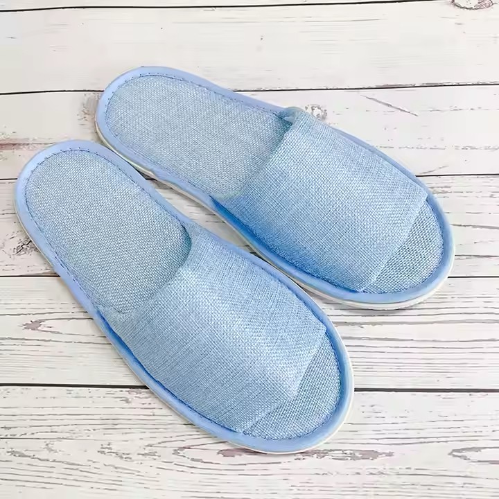 Linen slippers, cheap disposable spa family guest indoor hotel slippers
